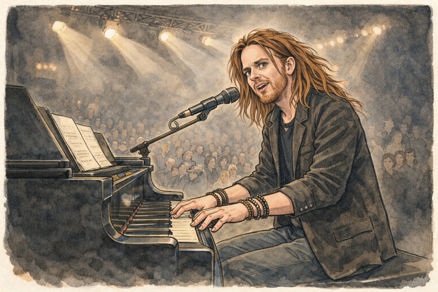 Happiness, Minchin suggests, is like an optical illusion — it vanishes the moment you look directly at it. The people who seem most content are the ones who stopped trying to "be happy" and instead stayed busy with meaningful work and focused on making others feel valued and cared for.
